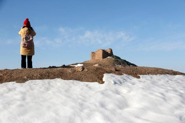 汉长城的残垣在雪中愈发嶙峋