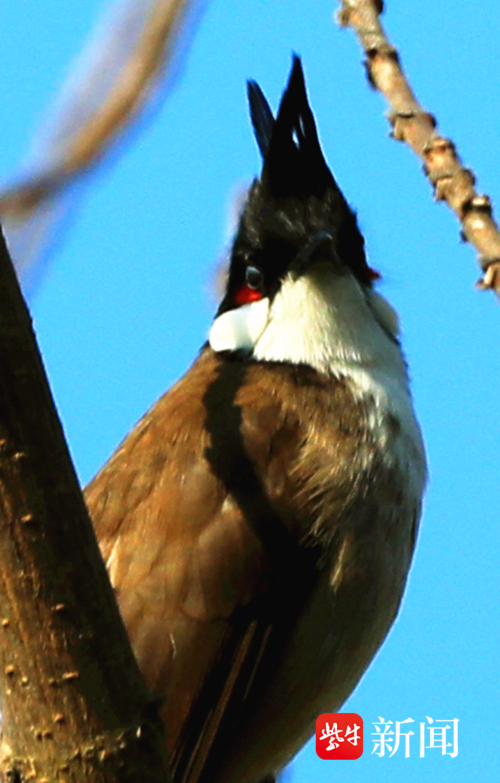 扬子晚报网1月6日讯(通信员 徐福庚 记者 董婉愉)头顶发型酷炫,小脸自带腮红,素性广袤好动,声息宛转入耳万博manbetx登录入口,这种鸟谁见谁爱。今天上昼,记者在南京东郊琵琶湖景区,见到两只正在枝端答应高出、摆脱嬉戏的红耳鹎,萌宠可人的神气诱骗了搭客的眼球。 红耳鹎 发型酷炫 自带腮红 红耳鹎长相相配专有,额头至头顶为玄色,且头顶长有立正的玄色羽冠,形似“杀马特”发型,显得个性皆备。眼睛下方有一块鲜红花纹,如同“涂了腮红”似的面颊,花纹下有块白斑,外围呈玄色,这些特征让红耳鹎在鸟类全国中显