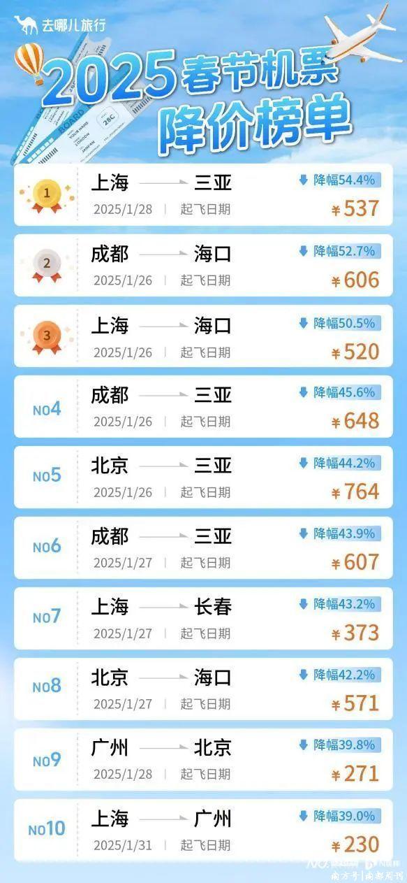 本文自南皆。 采写|南皆记者 肖阳 春节假期在即,又一波“机票大跳水”的音尘为游客制造价钱惊惶。到底是不是本年春节机票价钱又大跳水?节前滥觞的高价机票还不错“止损”吗? 机票跳水?皆是“调休”制造的价钱峰谷 “没念念到晚回家赶上了节前机票跳水,捡漏了!”在北京责任的李萌贪图不请假,大年三十再回合肥梓乡,查询发现大除夕机票比1月25日(大年二十六)低廉了1100元,“只花了400块,和火车票价钱差未几。” 去哪儿平台露馅,1月26日-28日部分热点航路机票价钱比春运岑岭期低廉超500元。以北京-