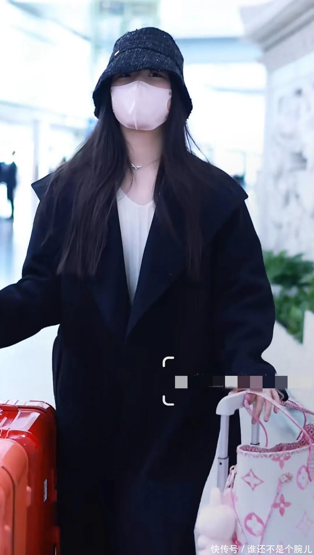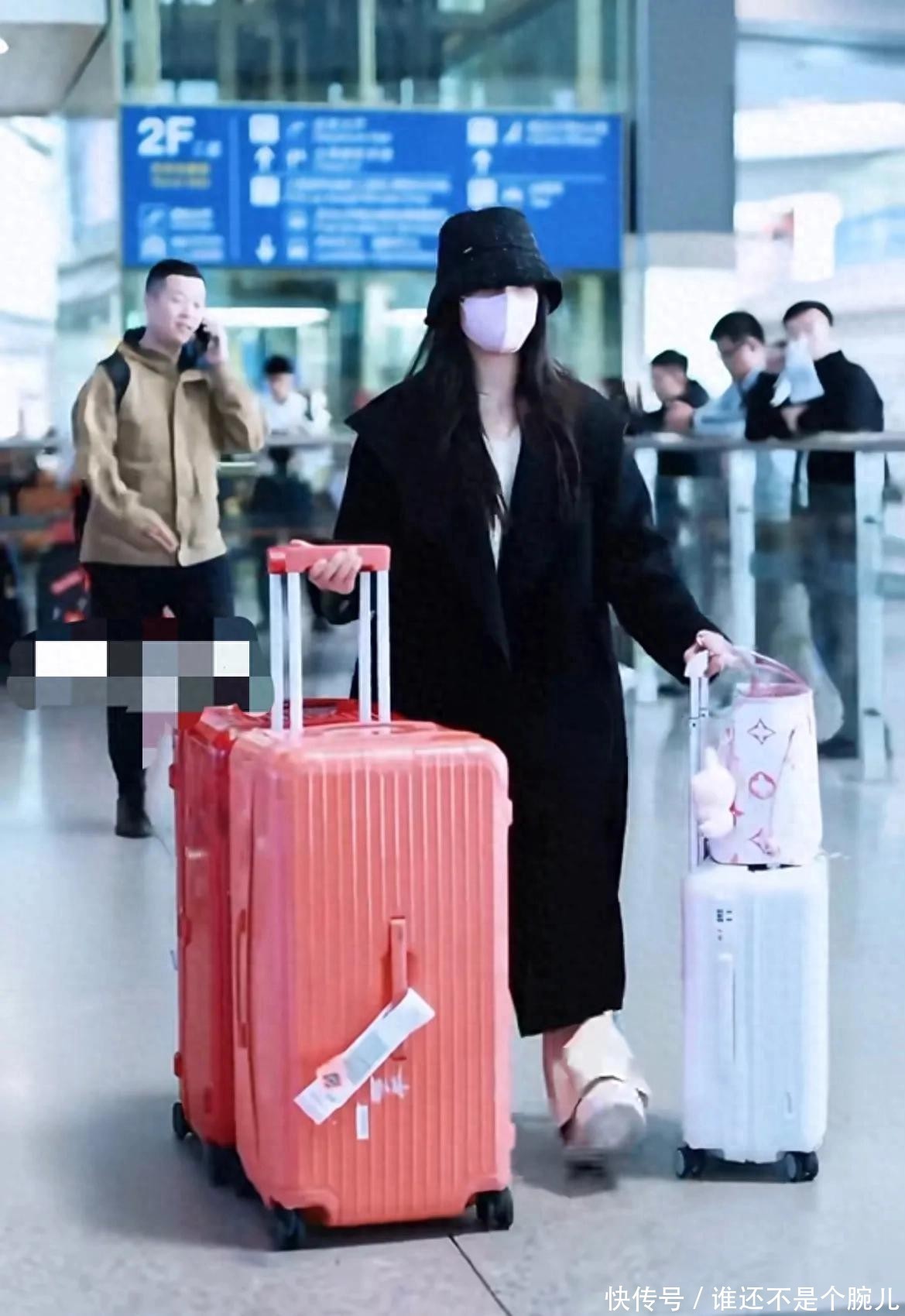 王诗龄一稔玄色大衣,戴着渔人帽。她一只手推着两个行李箱,一个红色,一个橙色,另一只手推着银色行李箱还放着一个LV包包。如斯看来,王诗龄这一次归国满载而归。
