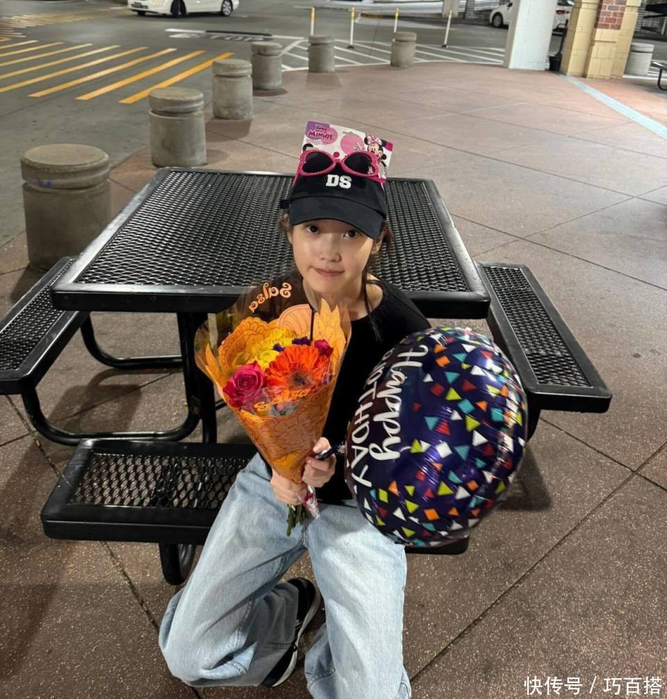 电视剧大爆后,IU并莫得浮夸,而是依旧和正常雷同低调行事,本年如故31岁的IU依然孩童气彻底,一手拿花一手拿气球的形象亲和力满分。