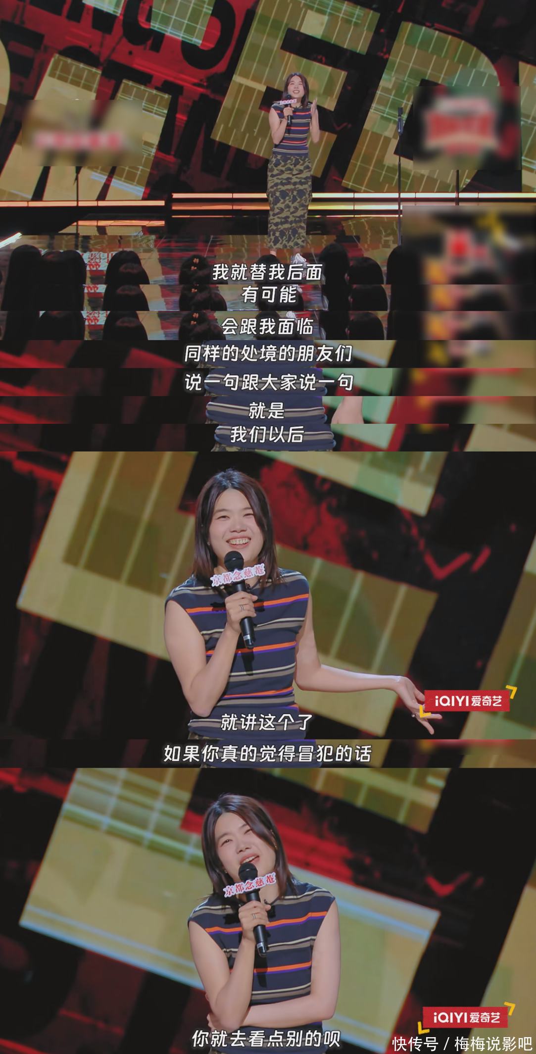 杨笠也对那些可能感到冒犯或不悦的不雅众提议了建议:“我就替我后头有可能会跟我靠近相通处境的一又友们说一句,咱们以后就讲这个了。要是你真实以为冒犯,你就去看点别的呗。”柔嫩又坚毅地反驳偏见,亦然对悉数女性脱口秀演员的声援和接济。女性有权力、也有才气在舞台上论述我方的故事,不以你主不雅上是否以为受到冒犯为革新。