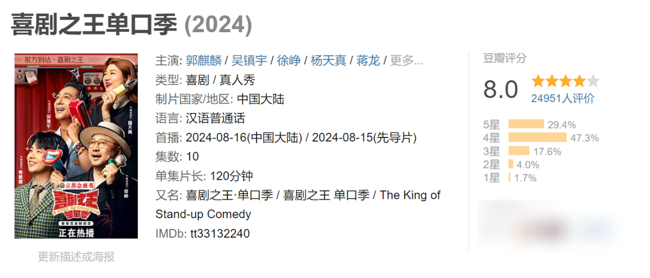 总决赛播出后,《单口季》的豆瓣评分从7.5分升至8分