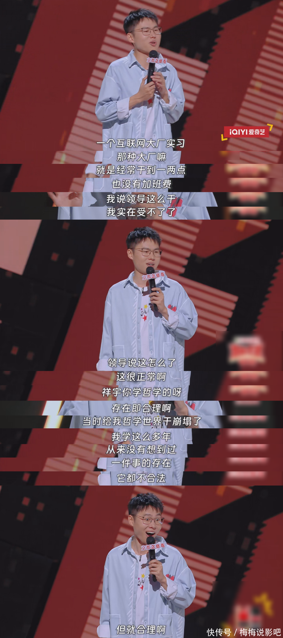 但线上大多数不雅众并不了解他们。当他们佩带新颖的内容、出奇的视角以及别具一格的饰演作风出现,为脱口秀节目增添新的活力与颜色,升迁了不雅众的不雅看体验,使得节目在卤莽媒体上的研究度与关注度不停攀升。就比如《单口季》全程其实播得不算多火,但付航总决赛炸翻全场的献技引爆卤莽媒体,让《单口季》总算迎来它的爆款“一刻”。