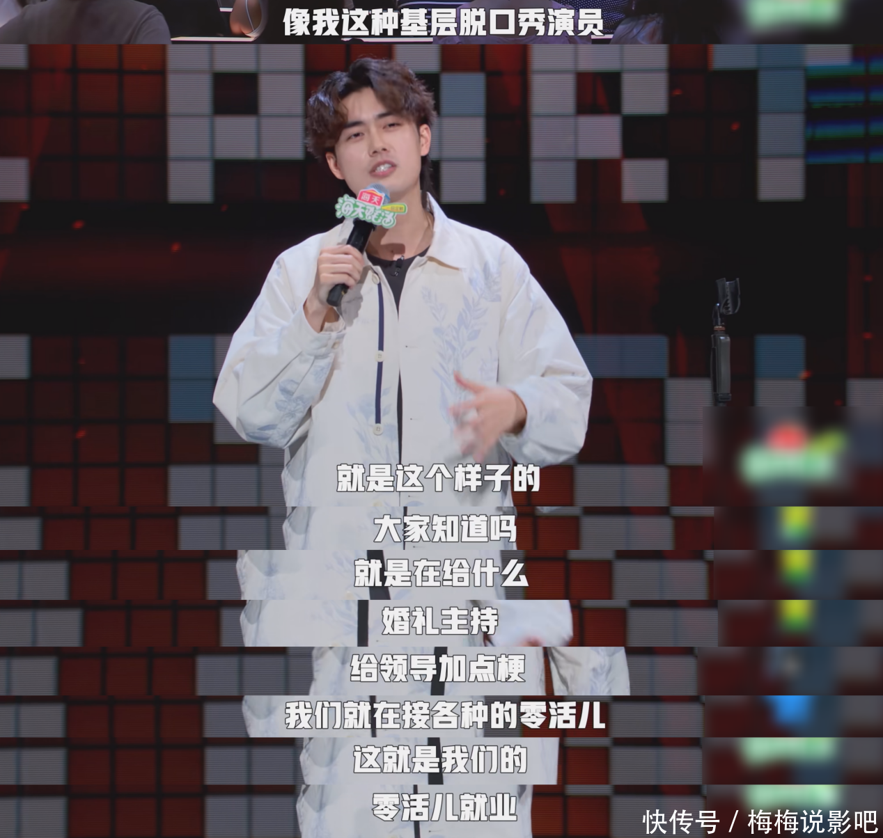 比如资格了行业风云后,许多脱口秀演员从也曾的舞台骄子变成闲逸者,身份的骤变成为他们伏击的素材着手。他们在段子中戏弄闲逸状况,论述求职的艰苦和糊口的尴尬。