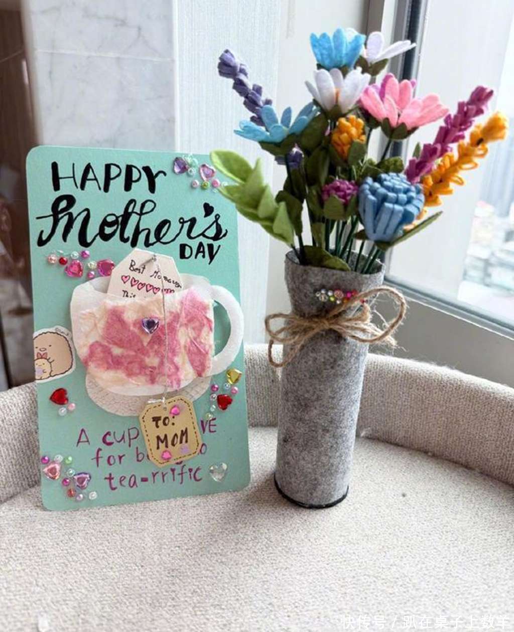 此次晒母亲节礼物,也算是贫苦的一次“露脸”。从贺卡和小花来看,小海豚如实挺有艺术天禀的。这画感,真不是吹的,比有些大东谈主画的齐好!