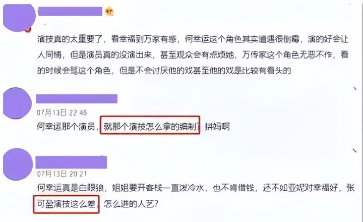 是以张可盈在《幸福到万家》里一出来,就被肆意吐槽。