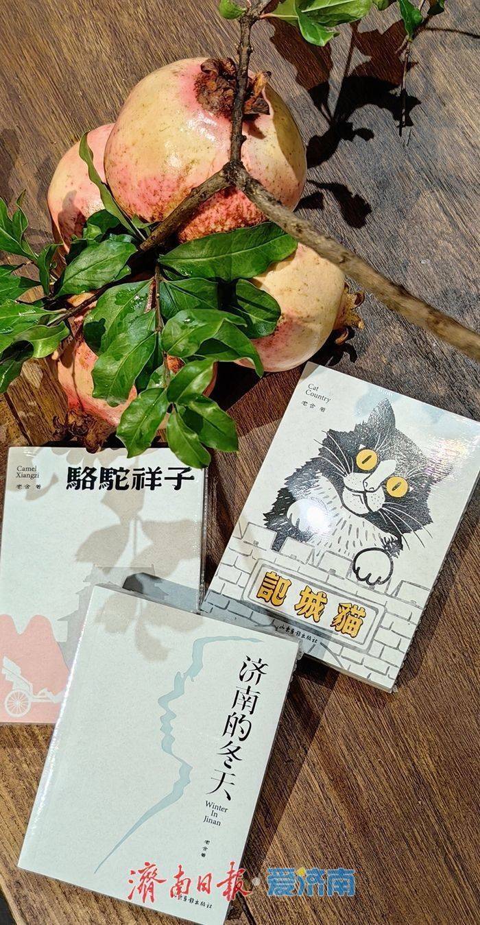与四个红石榴一同寄往北京的,还有一套《济南的冬天》《猫城记》和《骆驼祥子》口袋书,这是阡陌书店联袂山东画报出书社谐和打造的老舍经典作品文库本。