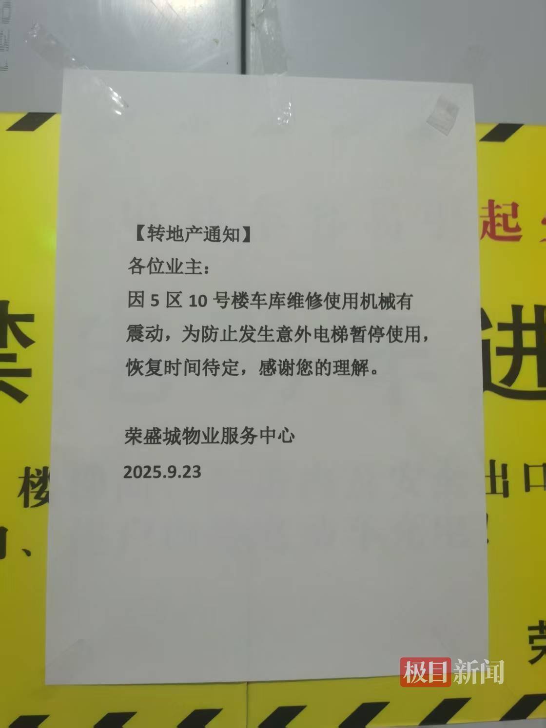荣盛城小区10号楼电梯停运(受访者供图)